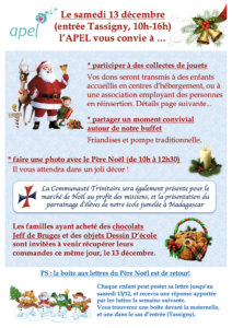 • Samedi 13/12 : collecte de jouets, marché Trinitaire, et plus encore…